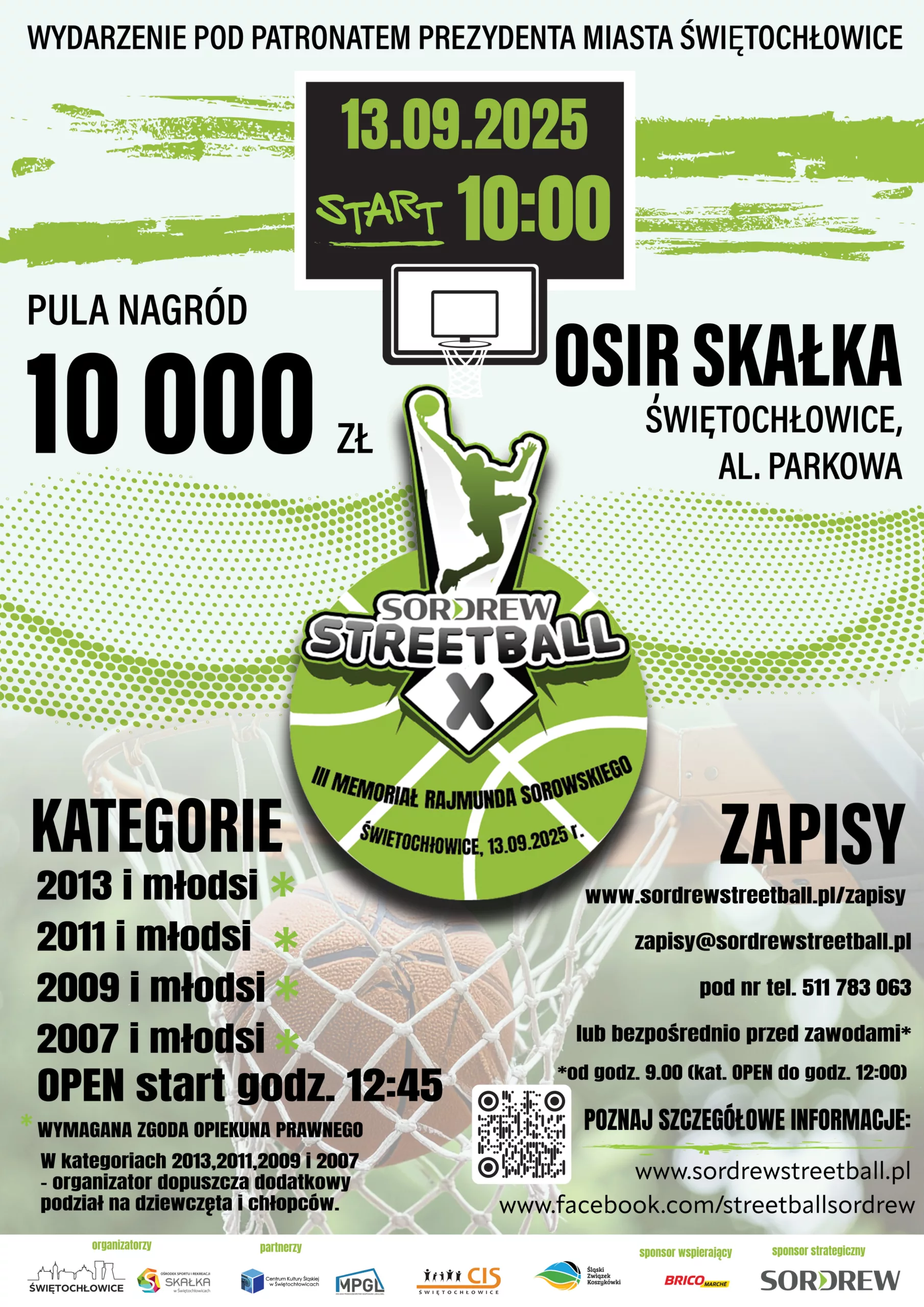 W sobotę 13 września na terenie Ośrodka Sportu i Rekreacji „Skałka” w Świętochłowicach odbyła się X edycja SOR-DREW Streetball – III Memoriału Rajmunda Sorowskiego. W zawodach wzięło udział 35 drużyn (120 zawodników), które rozegrały w sumie 74 mecze w 8 kategoriach.